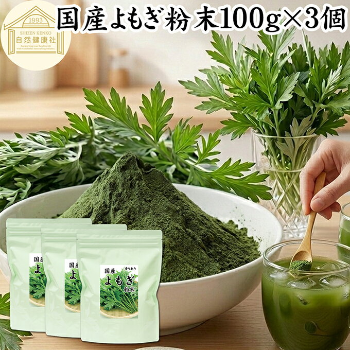 よもぎ粉末 100g×3個 ヨモギ パウダー 国産 無農薬 ヨモギ粉 よもぎ茶 ヨモギ茶 蓬 茶 青汁 乾燥 新芽 香り におい おすすめ 粉茶 お茶 お試し 保存料 無添加 ノンカフェイン 葉酸 ルテイン ポリフェノール ハーブ ティー クロロフィル 自家製 スムージー 餅用 自然健康社