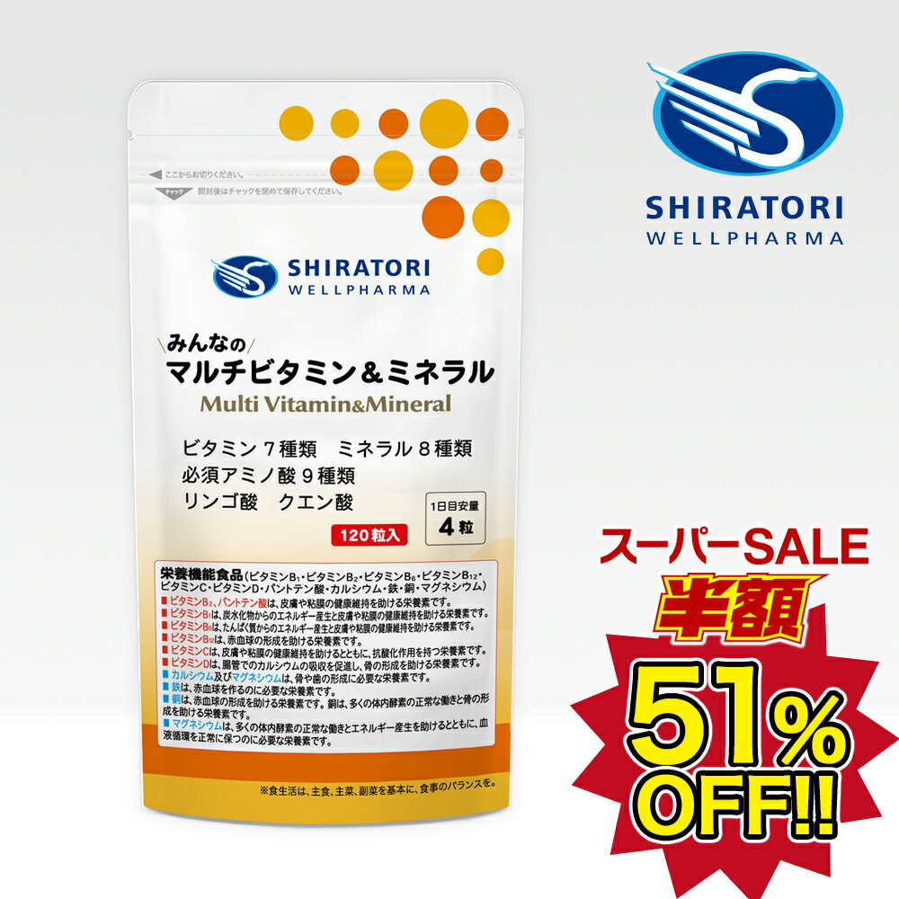 【51%OFF】【スーパーセール開催中!】みんなのマルチビタミン&ミネラル [120粒入]×1袋@30日分 / 栄養機能食品 ビタミン7種類 ミネラル8種類 必須アミノ酸9種類 リンゴ酸 クエン酸 日本国内GMP認定工場製造