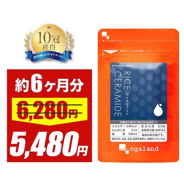 ライスセラミド (約6ヶ月分) グルコシルセラミド 美容 サプリメント サプリ 乾燥する季節は加湿器と一緒に潤い ケア コラーゲン ペプチド ポイント利用