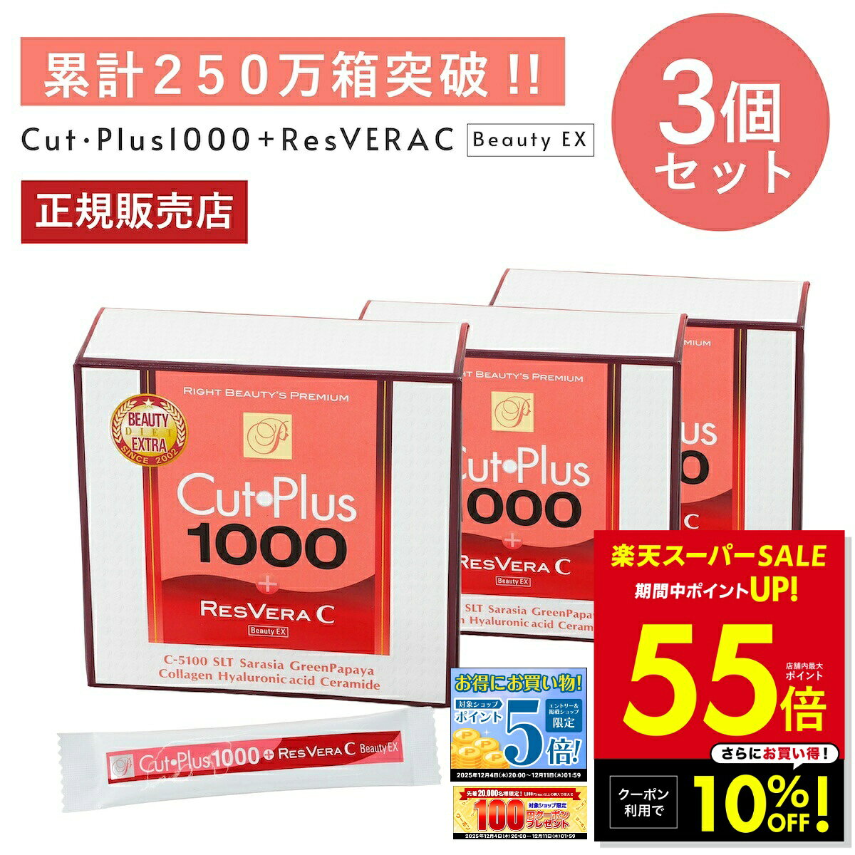 【SS★10%OFFクーポン!! 〜12/11 1:59】カットプラス 1000 レスベラC 2.2g×30包 お得な3個セット ダイエット サプリメント C-5100株 乳酸菌 レベストラトール ビタミンC 腸内環境 腸内フローラ 腸活 酵母発酵 美容成分 コラーゲン ヒアルロン酸 セラミド ワイン味 p20