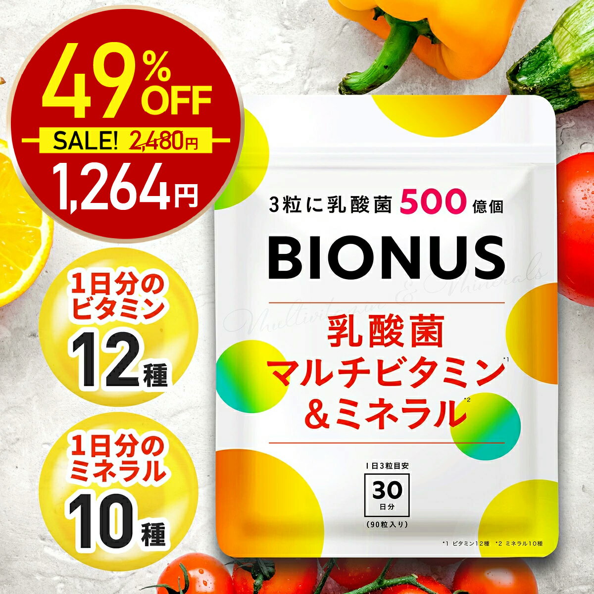 10%オフ 11/30 23:59まで マルチビタミン ミネラル 30日分 乳酸菌 500億個 ビオナス サプリ サプリメント 健康 美容 ビタミンA ビタミンB ビタミンC F