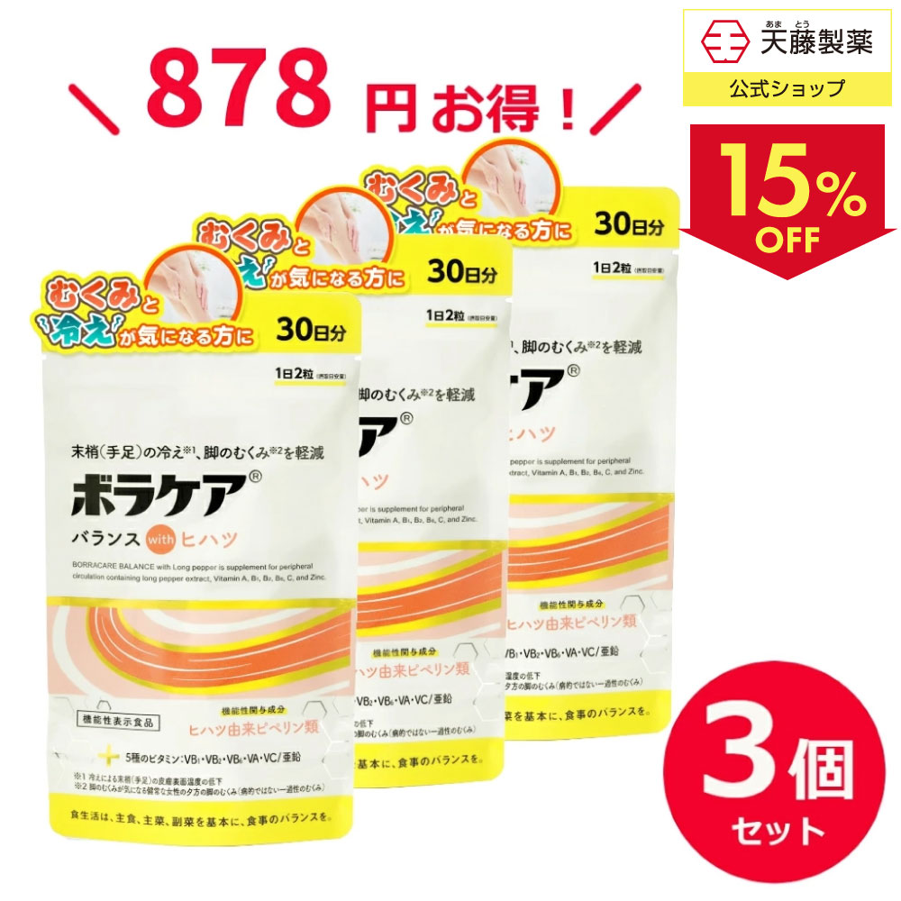 【クーポンで15%OFF 4日20時〜11日1:59迄】【3個セットで15%お得】 ヒハツ サプリ むくみ 冷え 温活 マルチビタミン サプリメント ビタミンB2 亜鉛 ひはつ ビタミンA ビタミンB1 ビタミンC 血流 血行促進 ボラケアバランスwithヒハツ 機能性表示食品 60粒 30日 天藤製薬