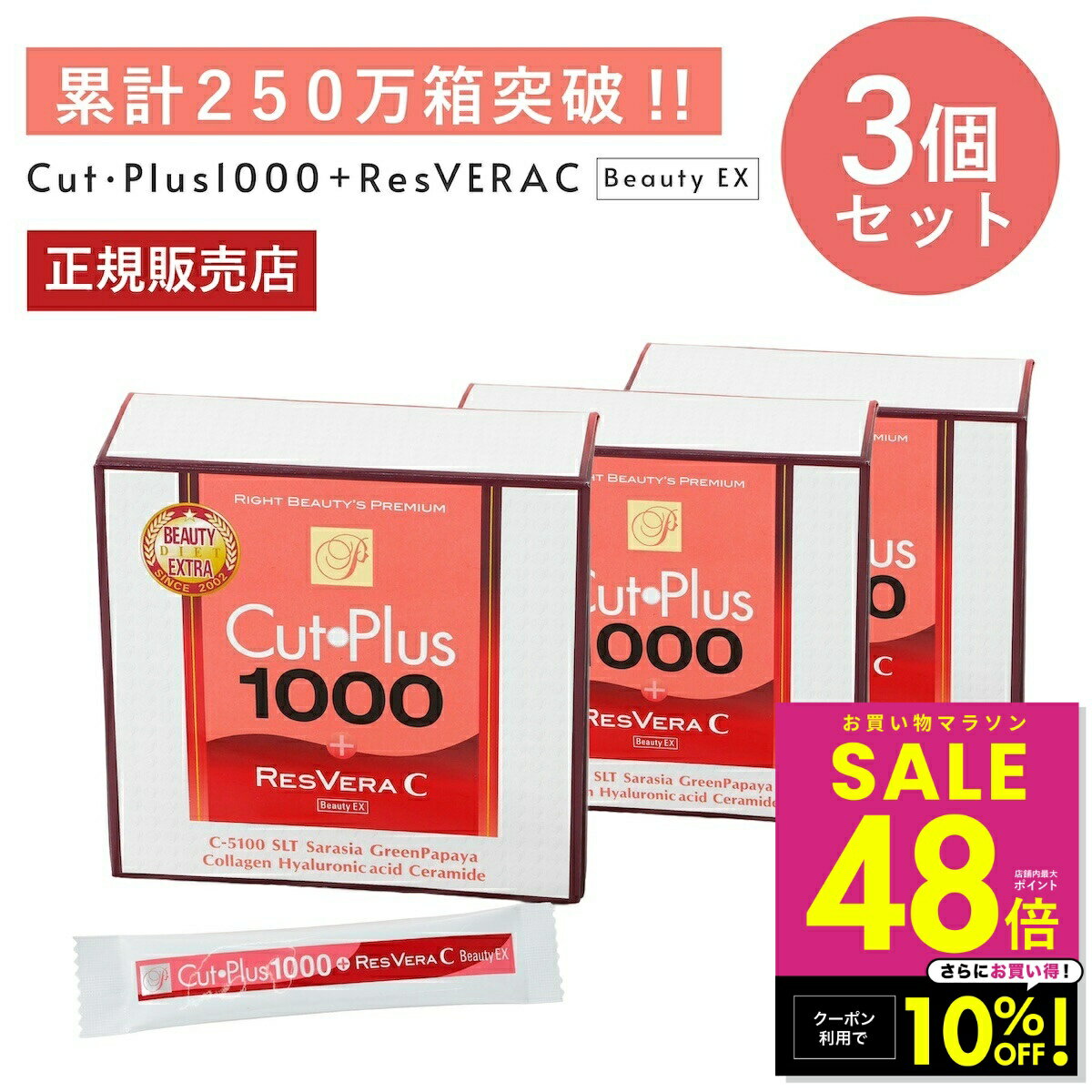 【クーポンで10%OFF!〜2/10 1:59】カットプラス 1000 レスベラC 2.2g×30包 お得な3個セット ダイエット サプリメント C-5100株 乳酸菌 レベストラトール ビタミンC 腸内環境 腸内フローラ 腸活 酵母発酵 美容成分 コラーゲン ヒアルロン酸 セラミド ワイン味 p20