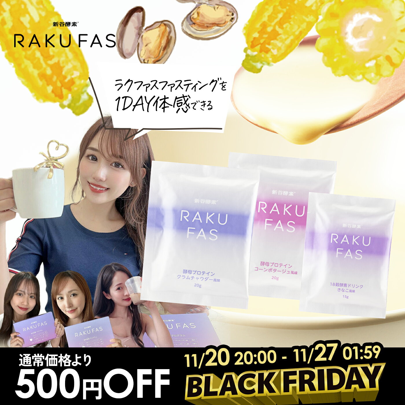 【 お試し 16時間 ファスティング 】ラクファス(週末断食プログラム) ダイエット サポート【 メール便 送料無料 】 新谷酵素 ( 酵素 ドリンク 1食 , 酵母 プロテイン スープ 2味 各1食 ) 痩せる 準備食 回復食 RAKUFAS
