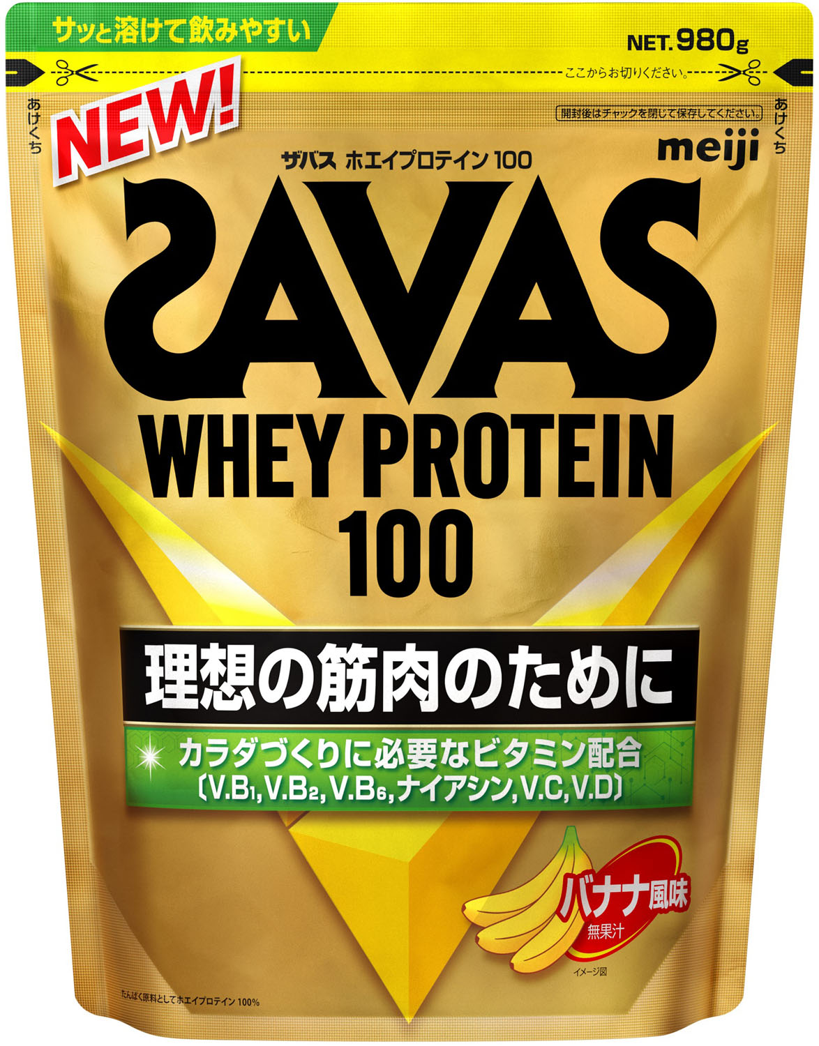 【11/30から全品3%OFFクーポン 先着100回&P10倍】 ザバス SAVAS ザバス ホエイプロテイン100 バナナ風味 980g トレーニング ジム ぷろていん ビタミン 2632057