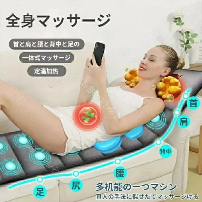 マッサージ 全身 収納袋付き マッサージマットレス マッサージマットレス 腰背中 マッサージチェア ッサージ 座椅子 温感熱罨法 加熱 定時 家用 車用 座椅子 折り畳みマッサージ機器 9個振動モーター搭載 お両親 誕生日