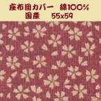 フクロウ 座布団カバー 銘仙判 YKKファスナー付 55×59cm エンジ コン ピンク 綿100% 和柄