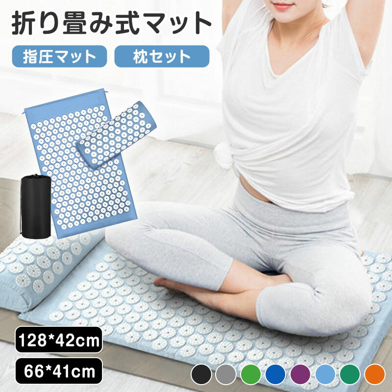 【50%OFFクーポンで1,990円】 指圧マット 針マット 枕付き 3点セット ツボ押し ヨガマット 厚手 マッサージ マット 折りたたみ リラックス ヨガ ストレッチ ヨガマット 厚手 大きい 大判 幅広 収納袋付き