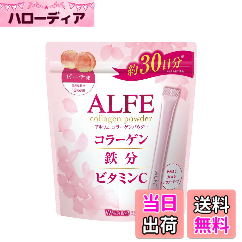 【送料無料】【栄養機能食品】アルフェコラーゲンパウダー 30袋 大正製薬 コラーゲン 鉄分 ビタミンC レモンバーム ベニバナ エラスチン デキストリン ヒアルロン酸 ビタミンB2 ビタミンB6 ピーチ味