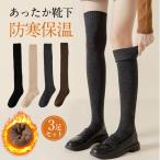 ロング丈 3足セット 靴下 レディース ハイソックス 厚手 冷え取り 保温 裏パイル 綿混 吸湿 発熱 着圧 弾性 冷え対策 オフィス アウトドア