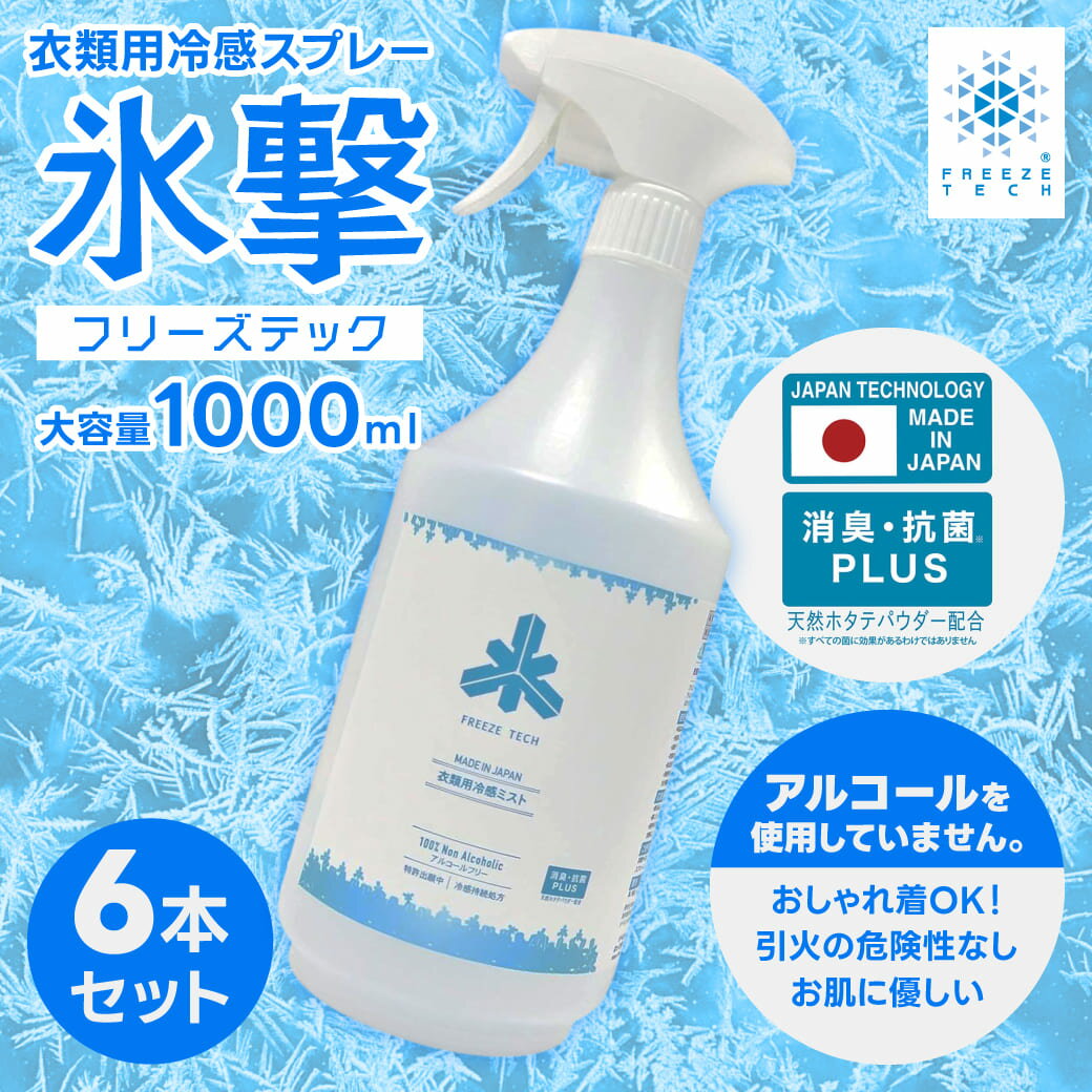 衣類用冷感ミストスプレー FREEZETECH 1000ml 6本 アルコールフリー 消臭 抗菌 冷感長時間持続 シャツ 布団 部活 通勤 フリーズテック