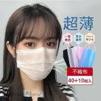 夏用マスク 不織布 カラー 立体 40+10枚 不織布 超薄 カラーマスク 大人用 メンズ レディース 一層構造 花粉対策 飛沫防止 抗菌