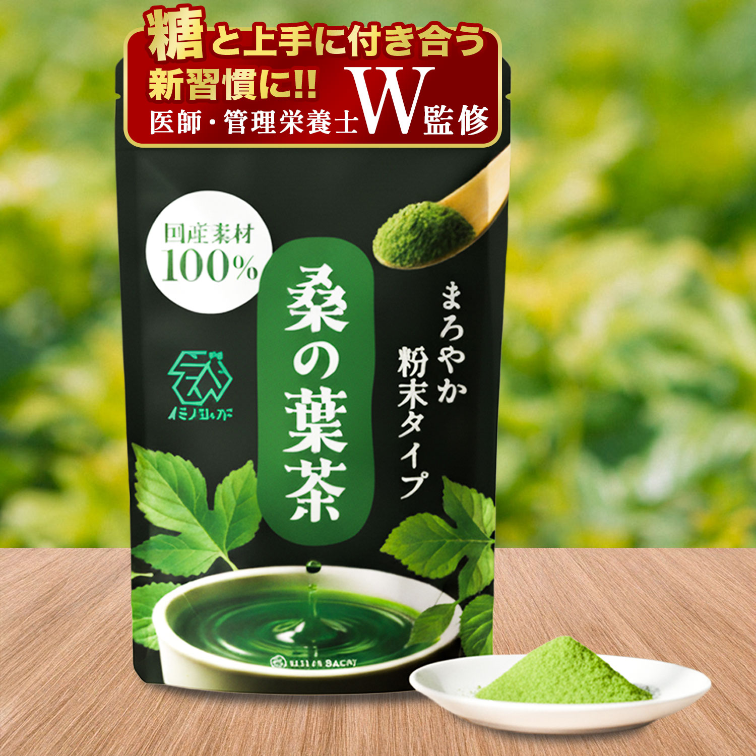 【医師・管理栄養士 W監修】桑の葉茶 粉末 パウダー 鹿児島県産 100g 桑茶 桑茶粉末 青汁 糖質 血糖値 ノンカフェイン 粉末茶