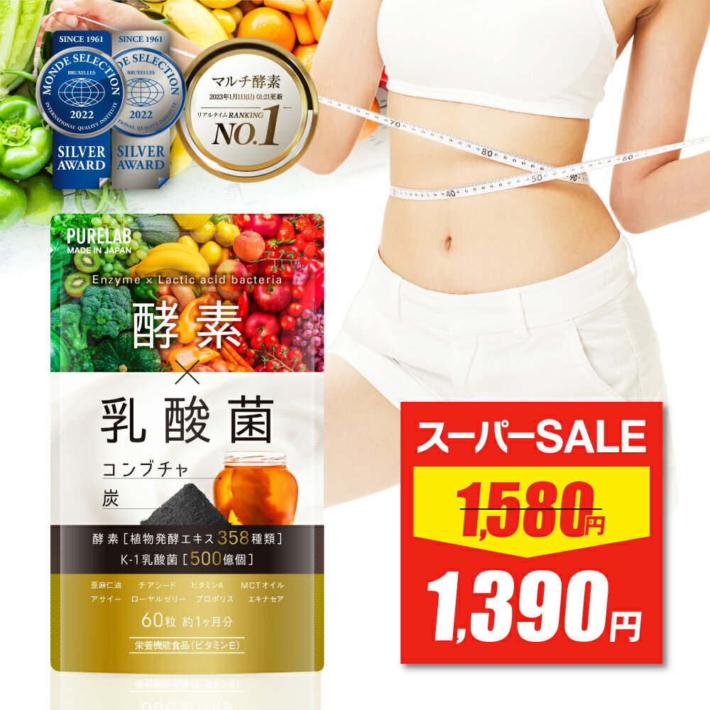 【スーパーSALE★最安値挑戦】 乳酸菌 酵素 サプリ 【1位獲得★栄養機能食品】 サプリメント 炭 チャコール コンブチャ こんぶちゃ ファスティング 酵素サプリ 生酵素サプリ 粒 生酵素 食物繊維 腸内環境 MCTオイル ローヤルゼリー チアシード アロエベラ