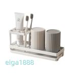 歯ブラシスタンド 置き型 防錆 大容量 歯ブラシ立て 洗面台用 水切り機能 歯磨き粉・電動歯ブラシ・シェーバー・洗顔フォーム収納 多機能 受け皿付き