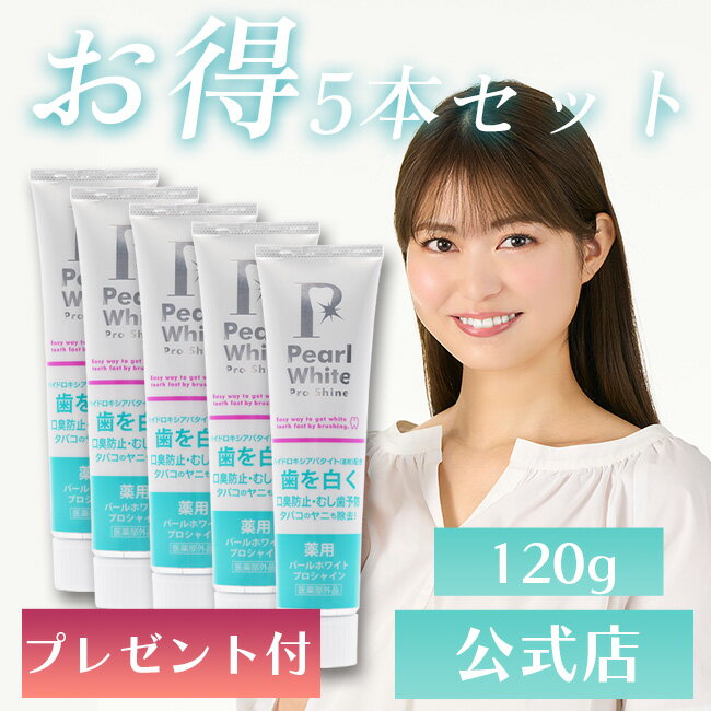 \20%OFF/【公式】薬用パールホワイトプロシャイン 120g x 5本セット お徳用 医薬部外品 ホワイトニング歯磨き粉 ポリリン酸ナトリウム配合 研磨剤不使用 着色汚れ ステイン ヤニ取り 虫歯 口臭 歯周炎 歯槽膿漏 ホームホワイトニング 日本製 お買い物マラソンポイント5倍