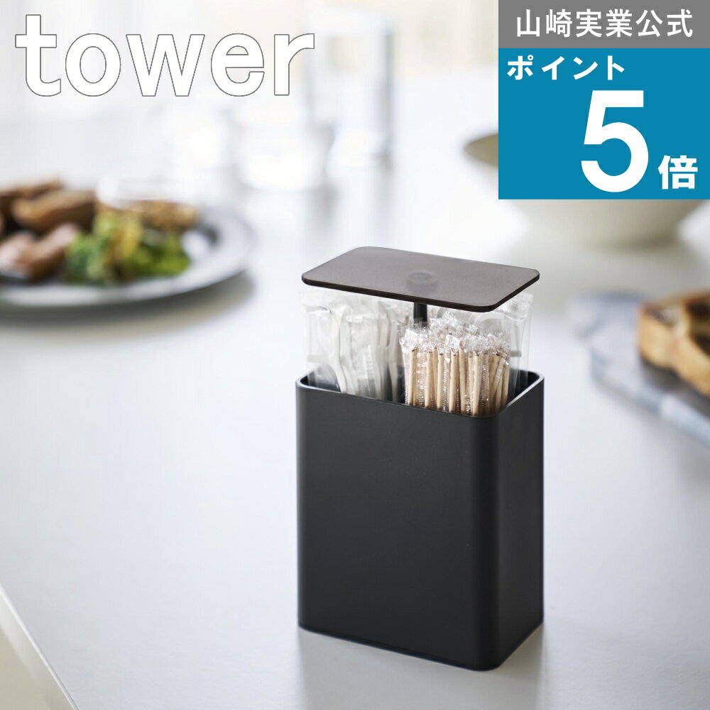 山崎実業 tower [ ポップアップ式綿棒ケース タワー ] 山崎実業 公式 オンラインショップ コットン 洗顔 メイク落とし 使い捨て 収納ケース 収納ボックス スタイリッシュ 机 キッチン 洗面所 ピンセット 200本 耳ケア 詰め替え 埃 防止 爪切り ホワイト ブラック
