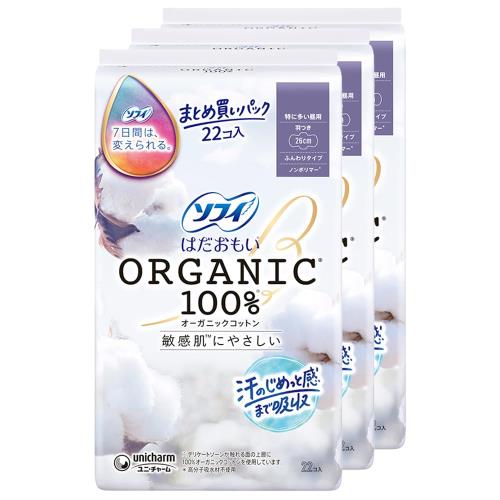 Sofy ソフィ まとめ買い はだおもい オーガニックコットン 特に多い昼用 羽つき 26cm 66コ入(22コ入×3個セット)(生理用品 ナプキン)