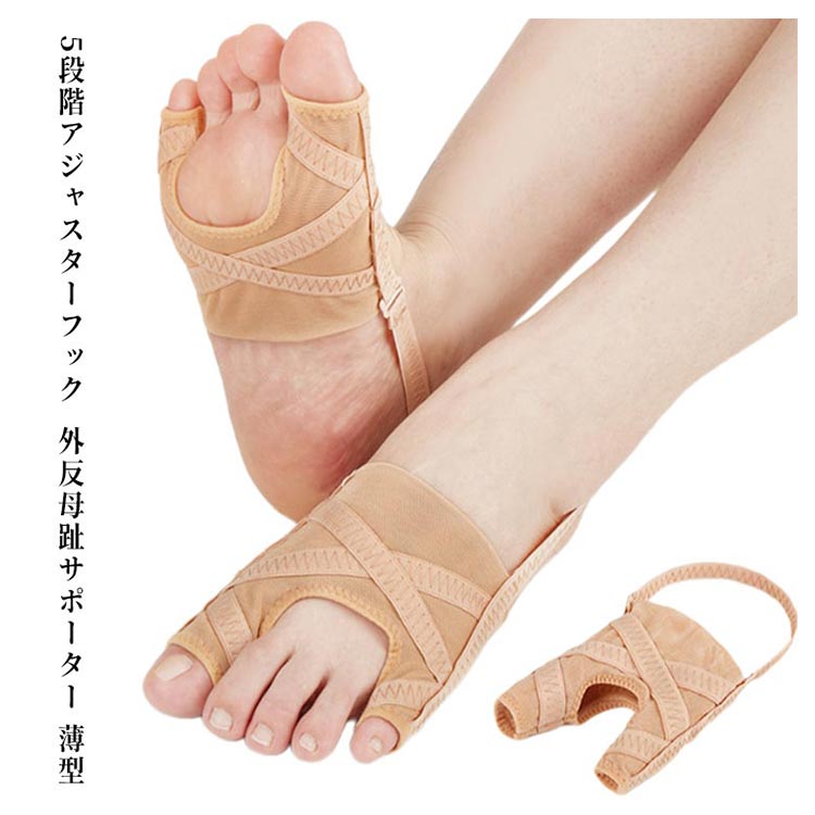 【6%OFFクーポン配布中!】母趾・小趾サポーター 薄型調整可能タイプ 5段階アジャスターフック付き 足指サポーター 足指を広げる