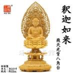 木彫り仏像 【釈迦如来】 飛天光背八角台 坐2.0寸 総高22cm お守り 御本尊 【天台宗】【曹洞宗】【臨済宗】