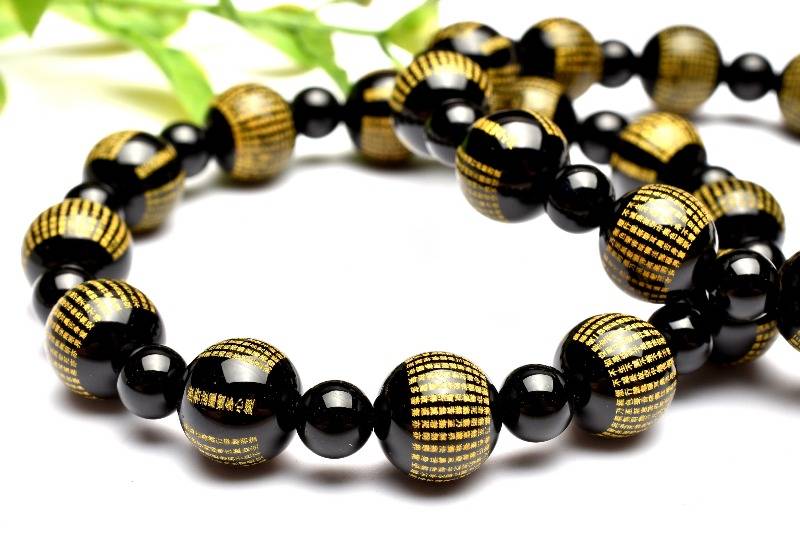 【20%OFF!】お守りに! オニキス 10(丸玉6)mm 般若心経彫刻 ブレスレット アクセサリー 1個売り _BG5635-10