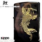 ZIPPO ライター 鯉 細密レーザー彫刻&金差し 和柄 ブラックニッケル&ゴールド ジッポ かっこいい お守り 渋い おしゃれ 黒金