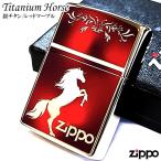 ZIPPO ライター かっこいい チタンホース シルバー&レッドマーブル ジッポ ロゴ 馬 チタニウム加工 彫刻 ウマ お守り メンズ おしゃれ