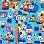 \期間限定10%OFF/ 生地 きかんしゃトーマス ステッカー柄/オックス(G-4541) 1A.ブルー 09Ae99_