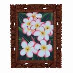 プルメリアの絵 ピンク 42X52 絵画 花の絵 リゾート ハワイアン アジアン バリ絵画 フランジパニ アート 240110