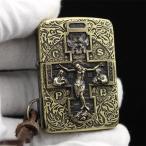 ZIPPO ライター 十字架 アーマー ベネディクトクロス 4面加工 ジッポ かっこいい アンティーク 重厚 シルバー燻し おしゃれ メンズ