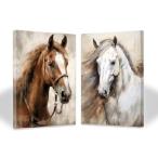 【並行輸入品】 ZXHYWYM 2ピース 馬 ウォールアート 白い馬の絵 茶色の馬の絵 野生動物 キャンバスプリント 西洋の農家 寝室 オフィス 装飾 額入り