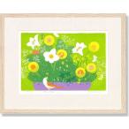 絵画 吉岡浩太郎 花と小鳥 版画 現代アート インテリア