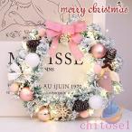 クリスマスリース 40cm クリスマス飾り ピンク 花輪 雪 松ぼっくり ボールゾンチー玄関ドア用 リース クリスマ飾り付け ledイルミネーションライト付き
