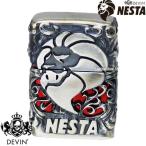 NESTA オイルライター メタルジャケット シルバー&レッド DEVIN ネスタ 日本製 ライター 銀イブシ 超重厚 豪華 銀 メンズ アクセサリー かっこいい プレゼント ギフト 動画あり