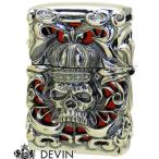 DEVIN デヴィン オイルライター スカルジャケット クロスガイ 4面加工 銀イブシジャケット オニキス1石 ニッケルレッド塗装MJCG-SC【送料無料】