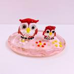 ガラス細工 ふくろうありがとうペア台(赤)ミニチュア 雑貨 置物 小物 梟