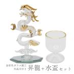 昇龍 ガラス細工 水盃 セット 龍の置物 Sサイズ 風水 縁起物 おしゃれ 玄関 竜 鏡 開運グッズ ドラゴン インテリア プレゼント