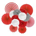uxcell ハンギングペーパーファンセット ペーパーフラワー装飾 ラウンドパターン ペーパーガーランド装飾 レッド 14個