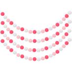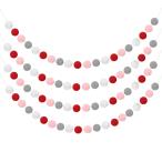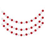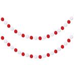 uxcell 4個 ポンポンガーランド6.6フィート30ボールカラフルフェルトボールガーランド 壁 装飾誕生日バナーイースターパーティー 装飾 赤 白
