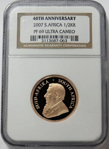 2007年 南アフリカ ゴールド 1/2オンス プルーフ クルーガーランド 40周年記念コイン NGC PF 69 UC