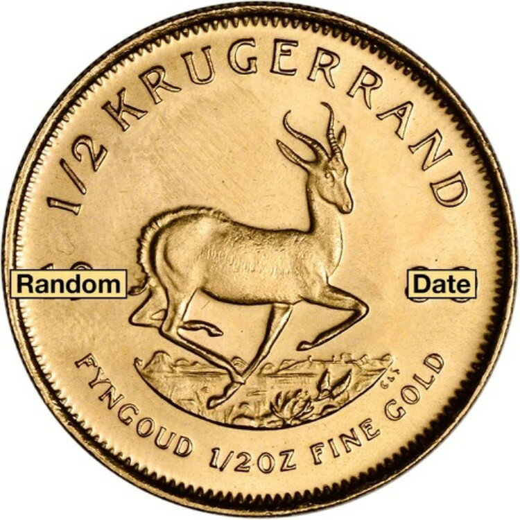 南アフリカ クルーガーランド金貨 - 1/2オンス - BU - ランダム日付