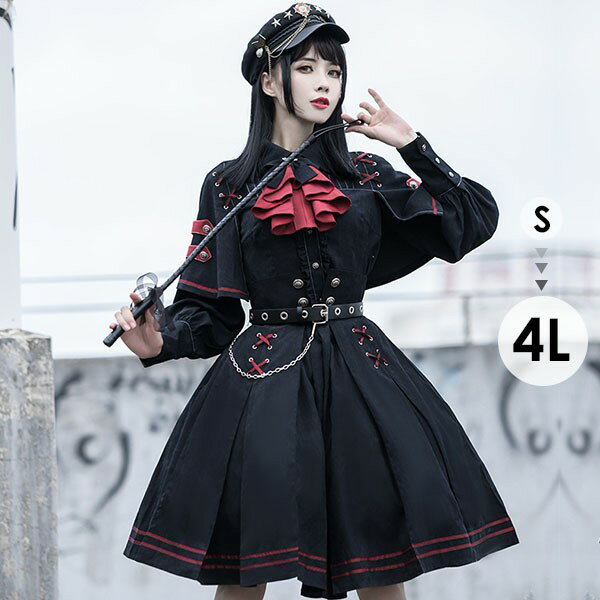 ミニロリ 軍服ロリータ フルセット ブラウス スカート 上下フルセット ミリタリーロリィタ ブラック 黒 膝丈 レディース ロリータアウター 着?せ 女の子 長袖あり ゴスロリ 厚手 防寒 寒さ対策 柔らかい 軽い着心地 暖かい dd143x1x1g4