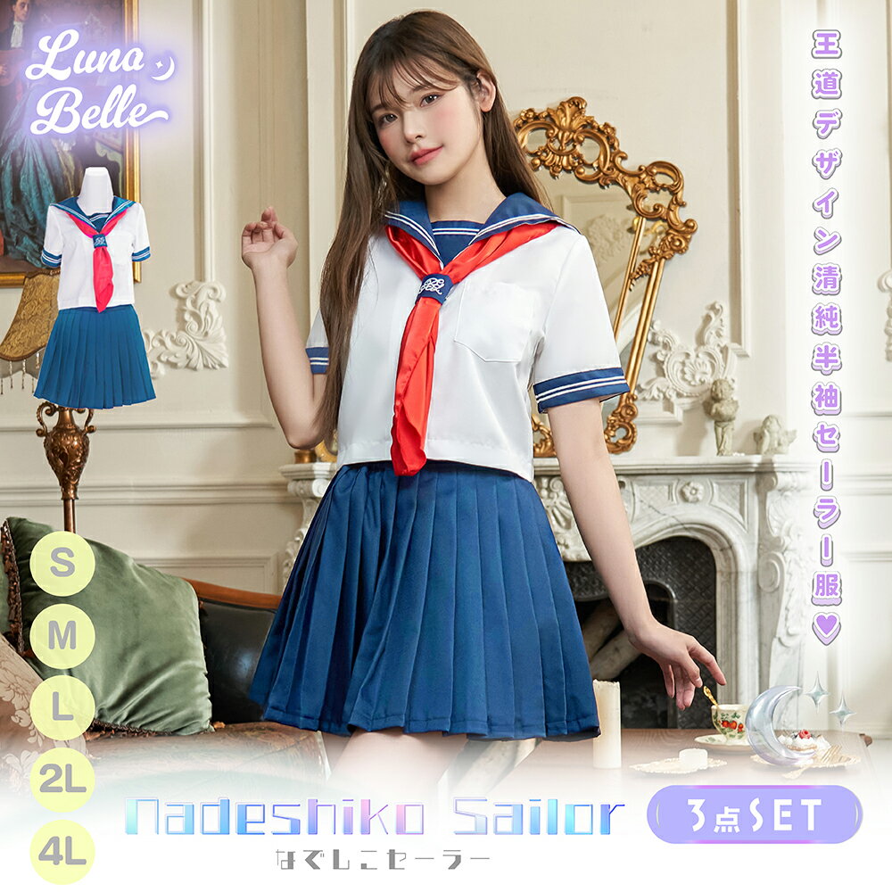 【10%OFFクーポン配布中!11日1:59まで】 コスプレ 制服 セーラー服 イベントコスチューム なでしこセーラー 可愛い 制服 スカーフ 女子高生 JK 学生 仮装 衣装 コスチューム おすすめ 大きいサイズ セット 半袖 クリスマスコスプレ クリスマス衣装 クリスマス
