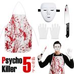 コスプレ 殺人鬼 5点セット 衣装 大人 子ども ハロウィン 仮装 コス マスク 包丁 手袋 エプロン ホラー キラー 怖い 全身 一式 キッズ 子供