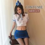 コスチューム コスプレ 4点セット CA風 キャビンアテンダント風 コスプレ衣装 帽子 スカート トップス イベント パーティー セクシー かわいい