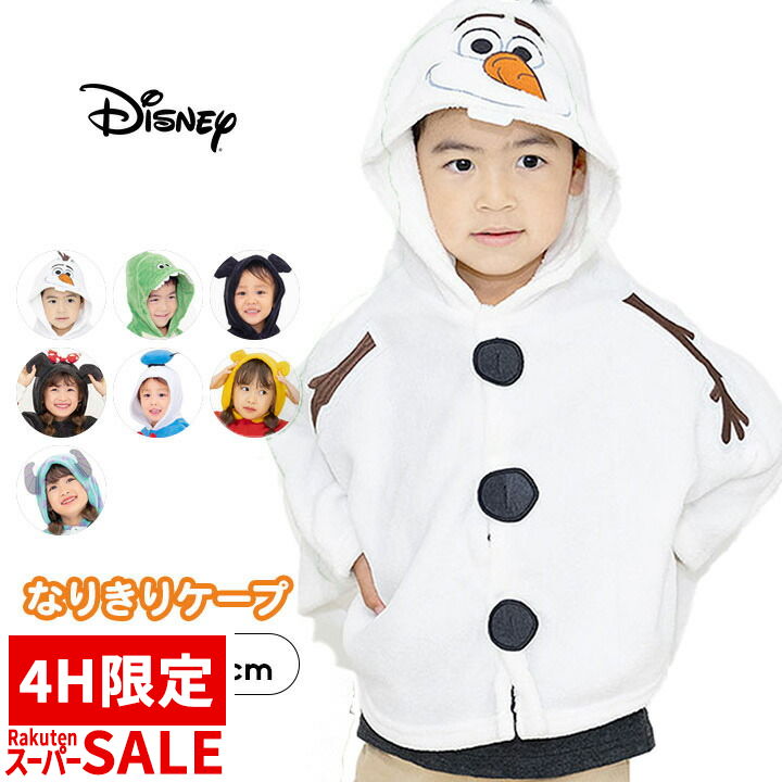 【開始4h限定40%offセール】ディズニー コスチューム オラフ コスプレ ハロウィン 衣装 子供 キッズ なりきり ケープ ポンチョ マント 女の子 男の子 ベビー キッズ 70 80 90 100 110 120cm 仮装 レックス ミッキー ミニー ドナルド サリー プーさん キャラクター