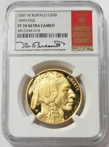2007 W ゴールド 50 ドル プルーフ バッファロー ブレセット サイン入り 1 オンス NGC PF 70 UC レッドブックラベル