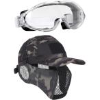 サバゲー マスク ゴーグル 帽子 装備 セット 眼鏡対応 サバイバルゲーム タクティカル( 1.ブラック, Free)