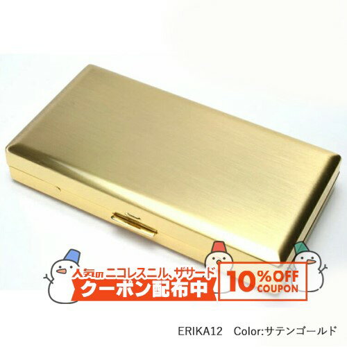 10%OFF配布中◇ エリカ12【サテンゴールド】ロングサイズ(100mm)×12本収納 1-28126-41 ◆シガレットケース タバコケース たばこ入れ 坪田パール ERIKA12 スーパーキングサイズ 喫煙具 携帯用 金属 メタル シンプル 金色