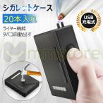 シガレットケース ライター付き シガレットボックス タバコケース タバコボックス 20本収納 携帯便利 USB充電 軽量 防水 電子ライター付き 使用便利 メンズ